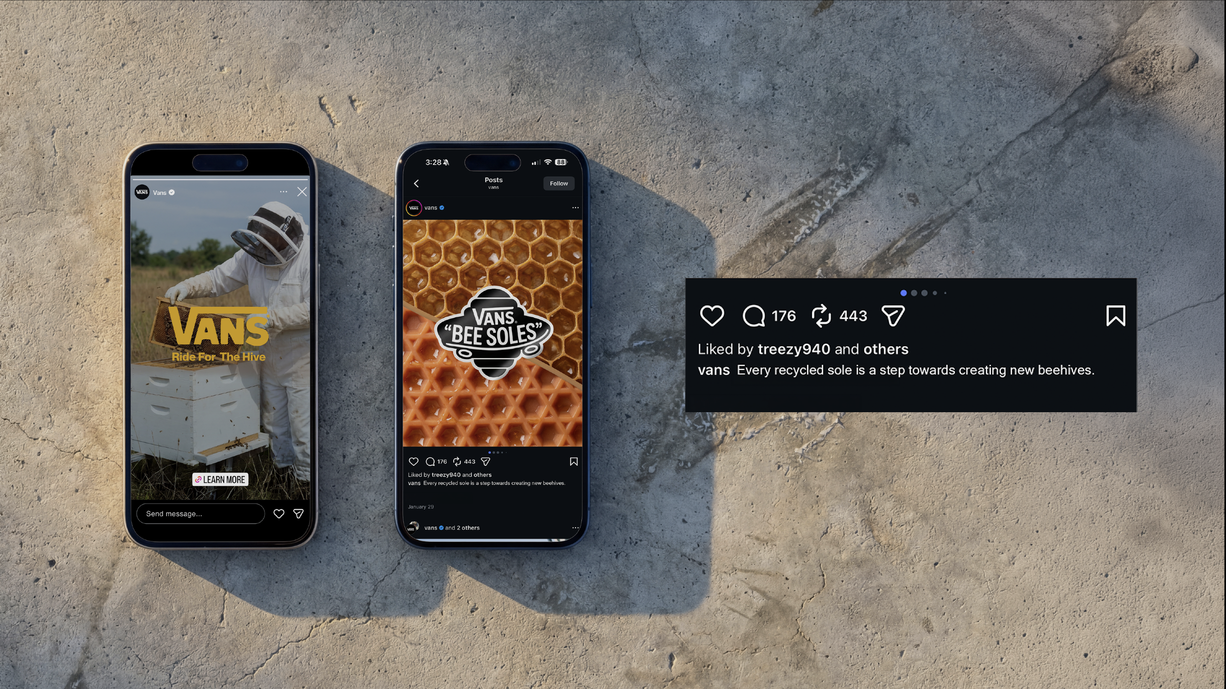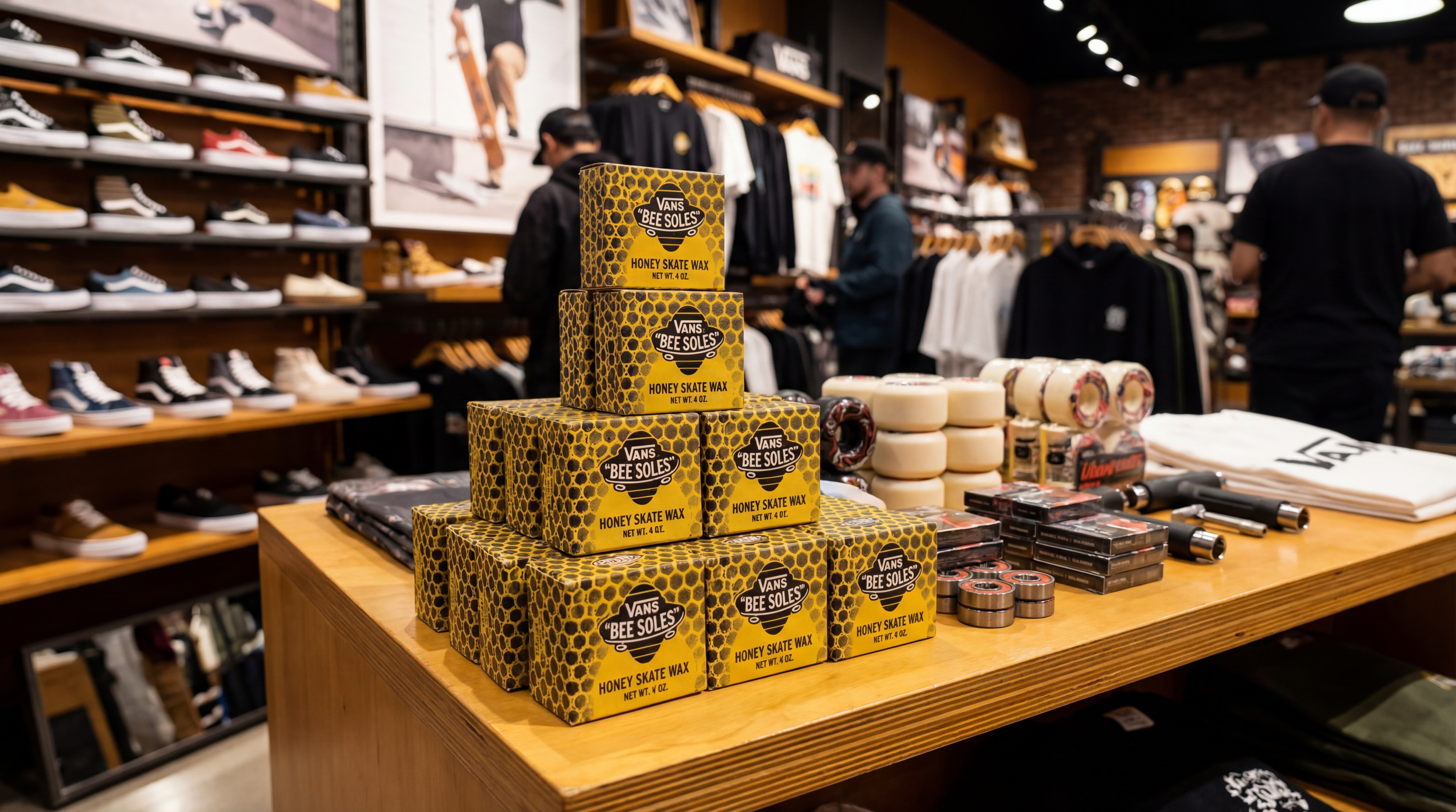 To make the process a full circle experience, Vans will create skate wax from the honeycomb they have produced with the recycled hives. Available at Vans stores.
